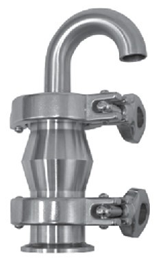 Top-Flo® Air Relief Valve TL60ARV is used primarily when removal of air from a line without loss of product is a concern. The design of the Top-Flo® Air Relief Valve TL60ARV is simple: a ferrule, a housing with a plastic ball, and a vent pipe all connected using 2 standard heavy duty clamps. This design will not let air enter the line or container under negative pressure