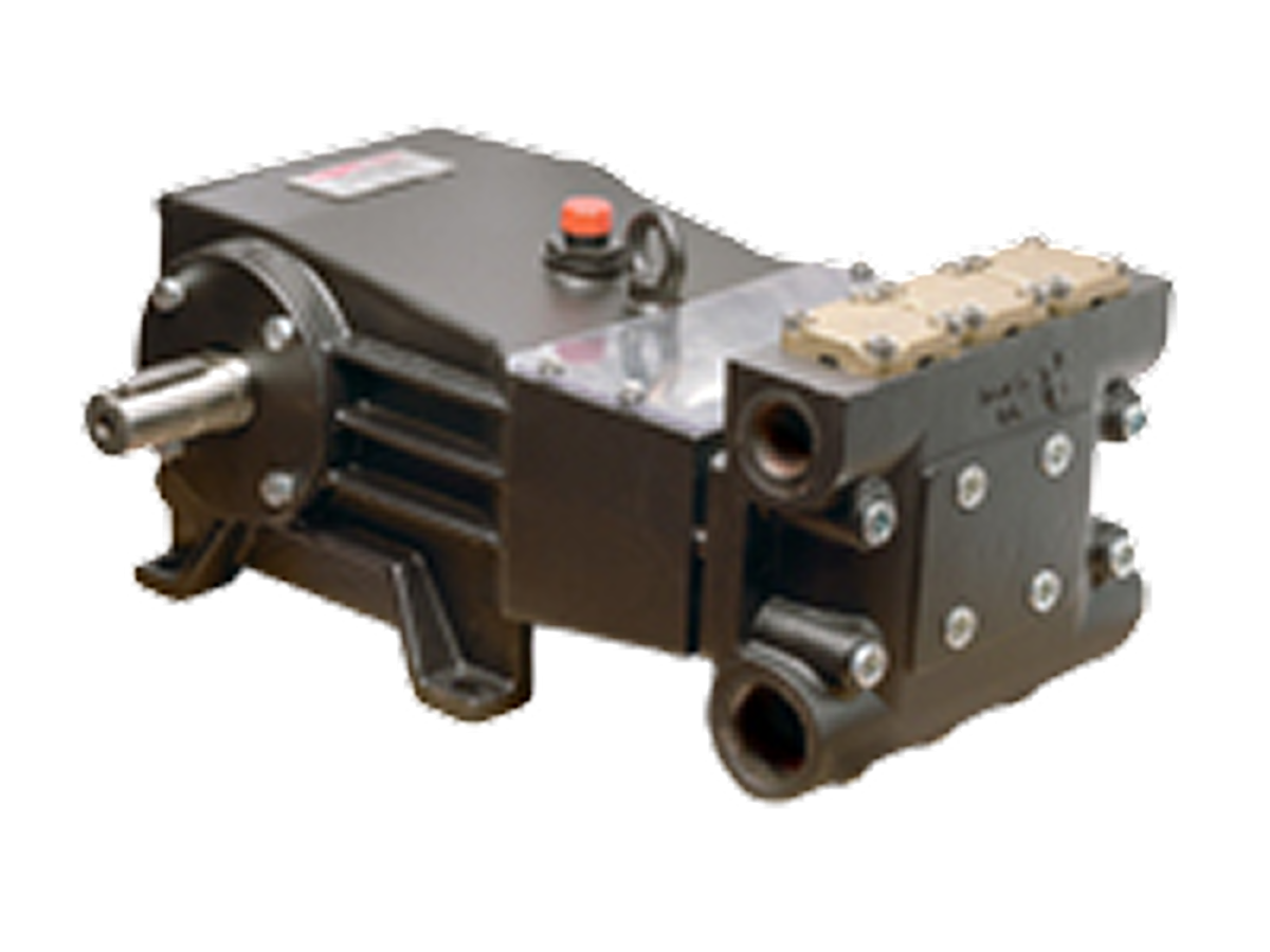 Spheroidal cast iron crankcase with sight glass and vented dipstick; forged, through-hardened, ground and polished crankshaft; bronze connecting rods; hardened stainless steel plunger bases; solid ceramic plungers; special seals with fabric reinforcing; stainless steel valves and Spheroidal cast iron manifold.