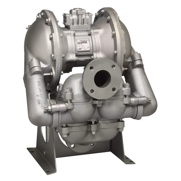 HDB Metallic Pumps are ideal for thin to highly viscous and small solids-laden fluids, while providing excellent suction lift capability and exclusive variable porting options (side, top, bottom and dual). HDB pumps are thick wall constructed of Sand Casted Aluminum, Cast Iron, Stainless Steel or Alloy C with elastomer, TPE (thermal plastic elastomers) and PTFE options in diaphragms and check valves. HDB pumps are enhanced with an extended wear package.